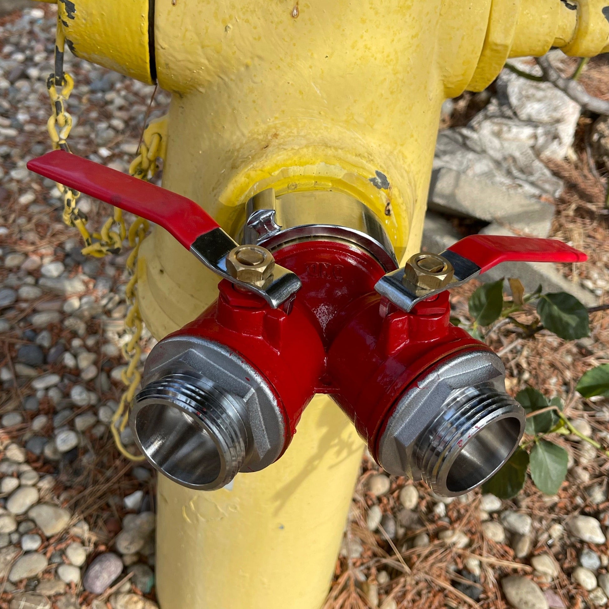 • Nozzles & deployment — Four Pyroclastic adjustable brass nozzles (fog-to-stream), brass gated WYE splitter for dual hoses.